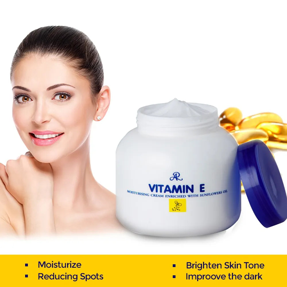 "আপনার ত্বকের যত্নে থাইল্যান্ডের বিখ্যাত AR Vitamin E Cream! এটি শুধু একটি ময়শ্চারাইজার নয়, বরং ত্বকের অল-রাউন্ডার সলিউশন। এতে আছে প্রচুর পরিমাণে ভিটামিন-ই এবং সানফ্লাওয়ার অয়েল, যা আপনার ত্বককে করবে কাঁচের মতো উজ্জ্বল এবং মাখনের মতো নরম। হাত, পা, মুখ এমনকি পুরো শরীরে এটি ব্যবহার করা যায়। সব ধরনের ত্বকের জন্য উপযোগী এবং কোনো পার্শ্বপ্রতিক্রিয়া নেই।"